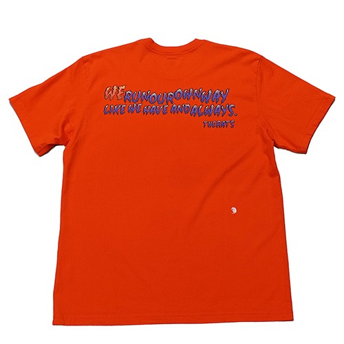 フロントの“VARMINTS”は不愉快な奴を示すシニカルなワード、背面に“WE RUN OUR OWN WAY LIKE WE HAVE AND ALWAYS”のメッセージをインクジェットプリント。