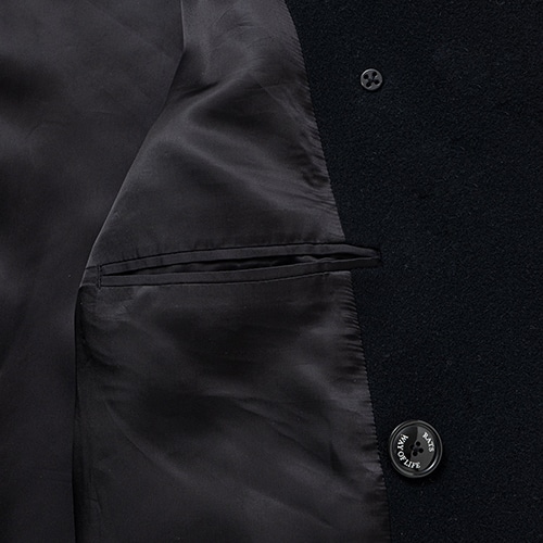 表地は軽量かつ光沢が豊か、保温性・しなやかさに富む上質なメルトン、裏地にキュプラを使用したオリジナルのPコートです。