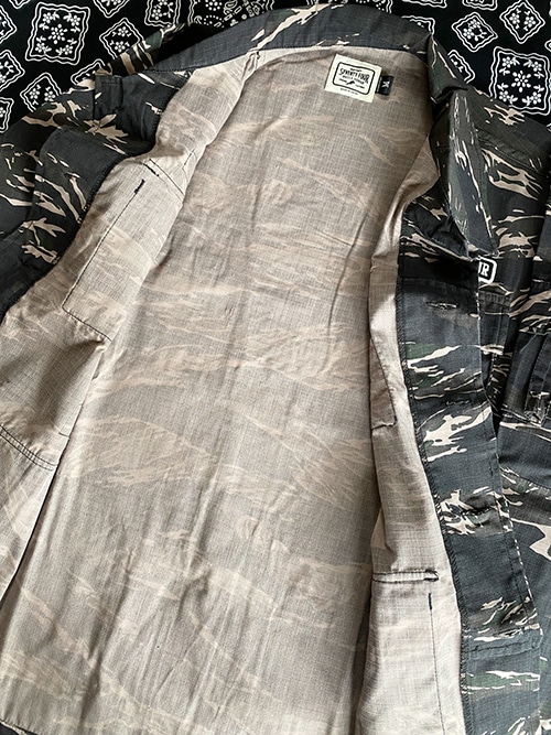 タイガーカモフラージュ柄コットンリップストップ生地を使用したBDUシャツジャケットです。