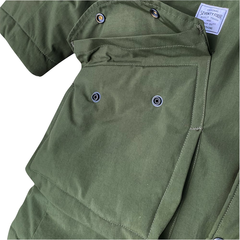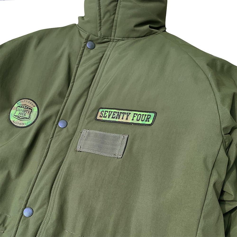 フロントにはSEVENTY FOURロゴ刺繍ワッペンが施されております。