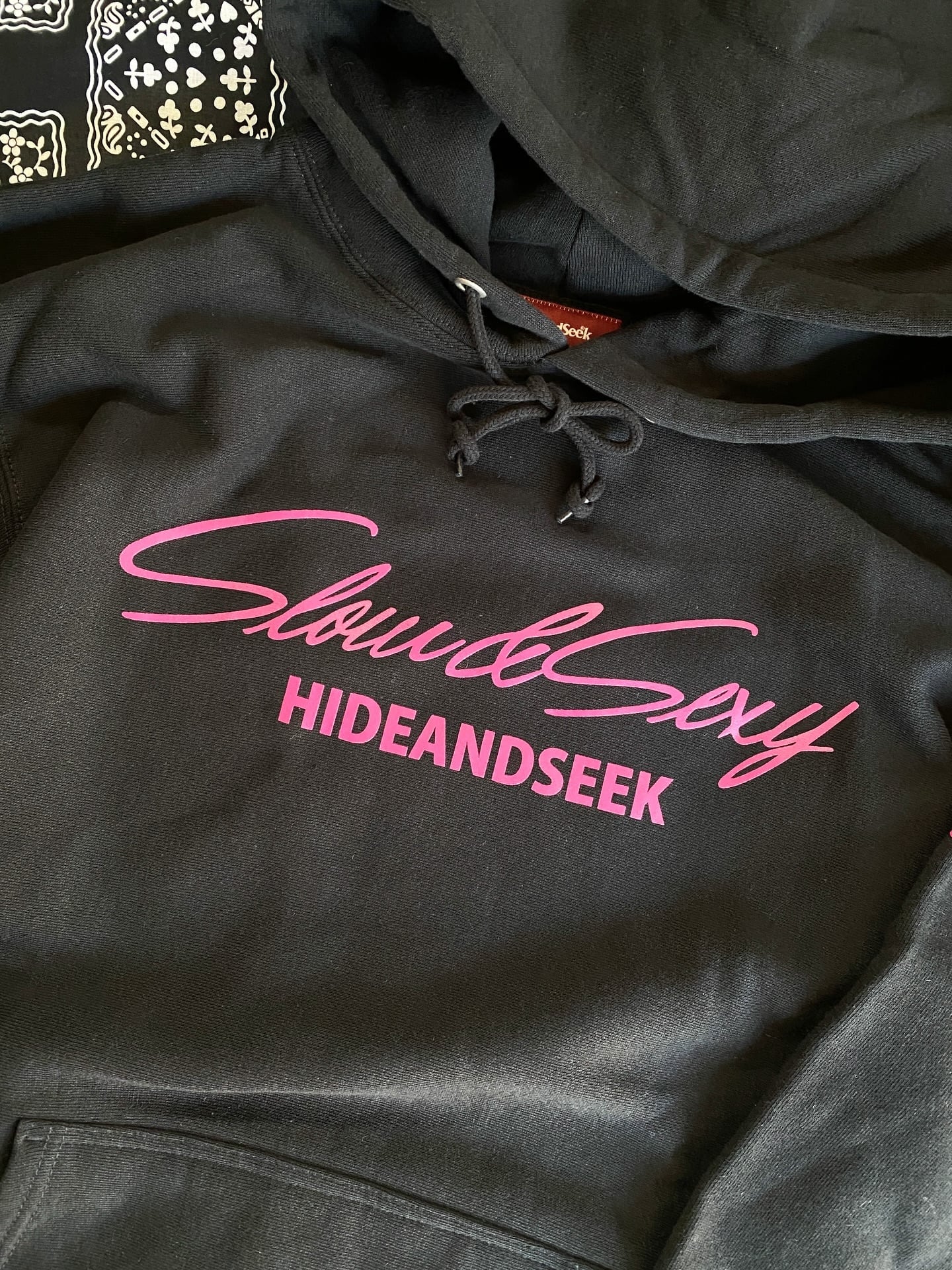 スウェットパーカー / HIDEANDSEEK(ハイドアンドシーク) / SLOW&SEXY HOODED SWEAT SHIRT(BLK×PINK)(30th-110225)
